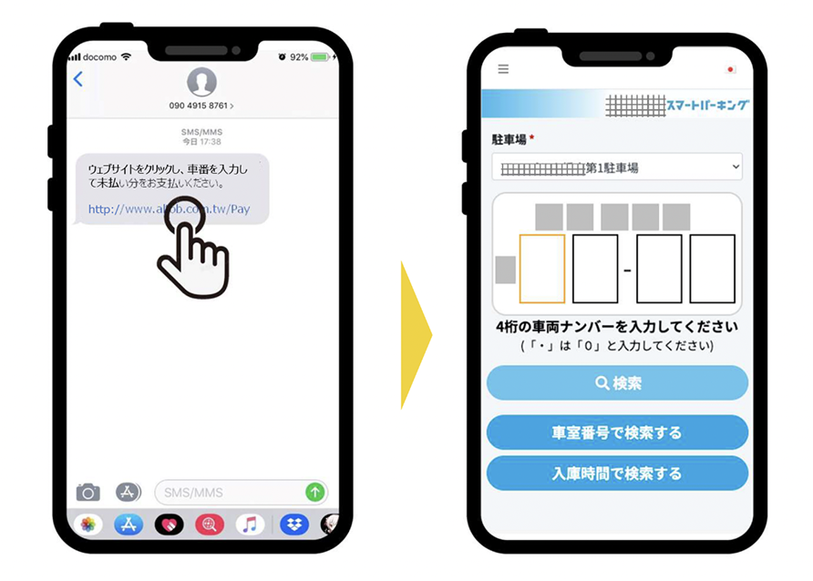 - 複数検索:車室番号、車両番号、入庫時間での検索。